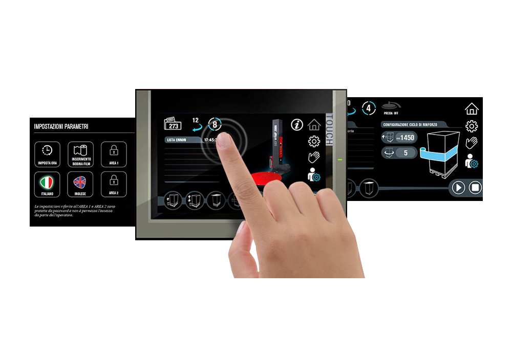 Der QuickWrap 2000 A ist ein leistungsstarker, halbautomatischer Palettenwickler, der hohe Effizienz mit präziser Kontrolle über den gesamten Wickelprozess verbindet. Die Folienspannung wird über eine mechanische Kupplung gesteuert, die sich manuell exakt einstellen lässt. Über den benutzerfreundlichen Touchscreen passen Sie alle variablen Wickelparameter wie Wickelhöhe, Drehgeschwindigkeit und Folienüberlappung schnell und einfach an Ihre individuellen Verpackungsanforderungen an. Während des gesamten Wickelvorgangs behalten Sie die vollständige Kontrolle über sämtliche Einstellungen.