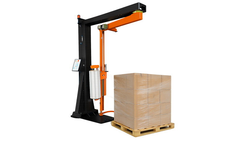 L'avvolgitore a braccio rotante è un avvolgitore di pallet stazionario che può essere utilizzato per avvolgere in modo sicuro pallet pesanti o instabili con film estensibile. A differenza dei classici avvolgitori a tavola rotante, il pallet rimane fermo durante l'intero processo di avvolgimento, mentre il braccio rotante con il film estensibile ruota intorno al carico.